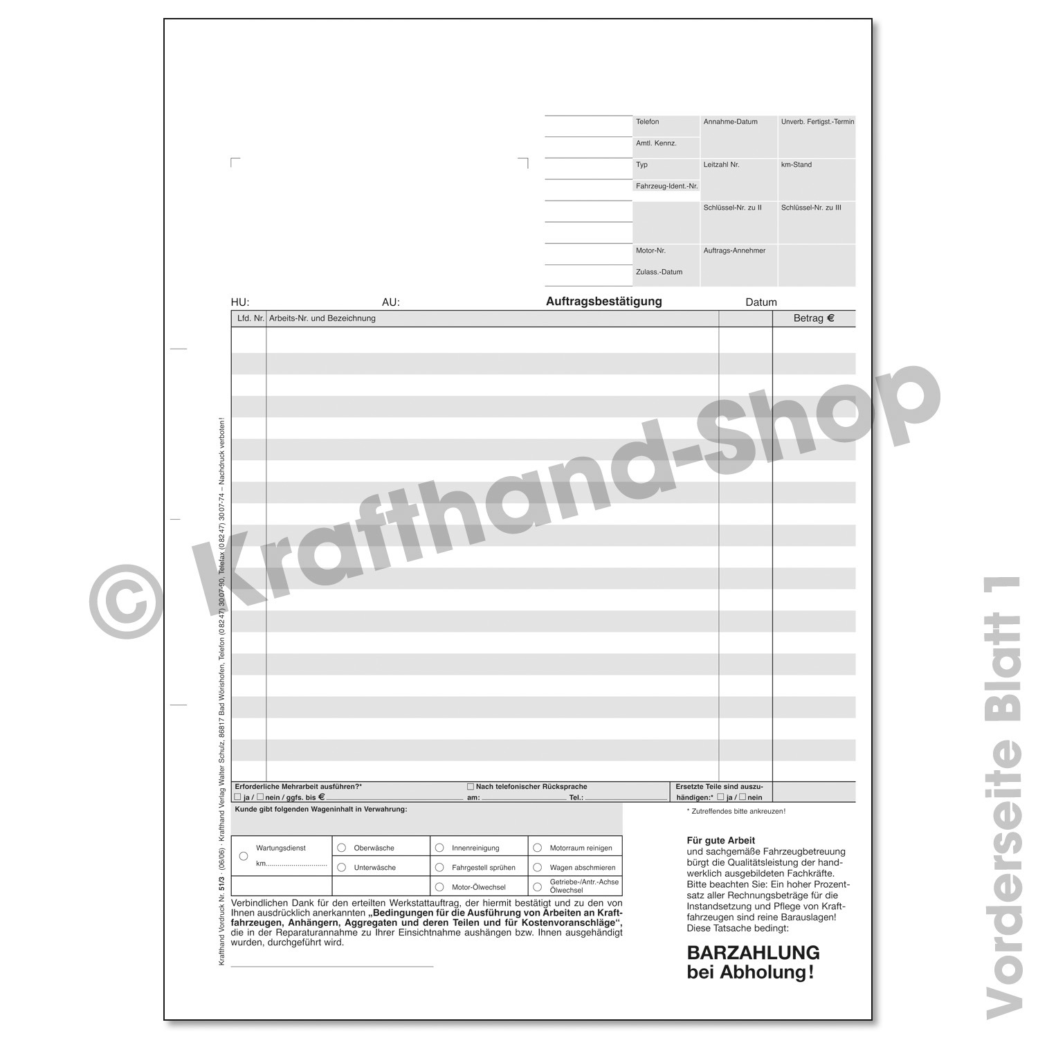 • Auftragsbestรคtigung/Teilebeleg/Werkstattkarte